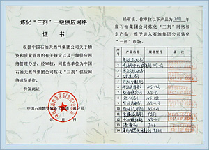China''s oil refinery, "3" level certificate of supply network |