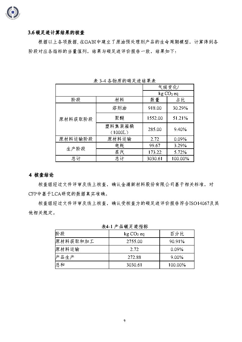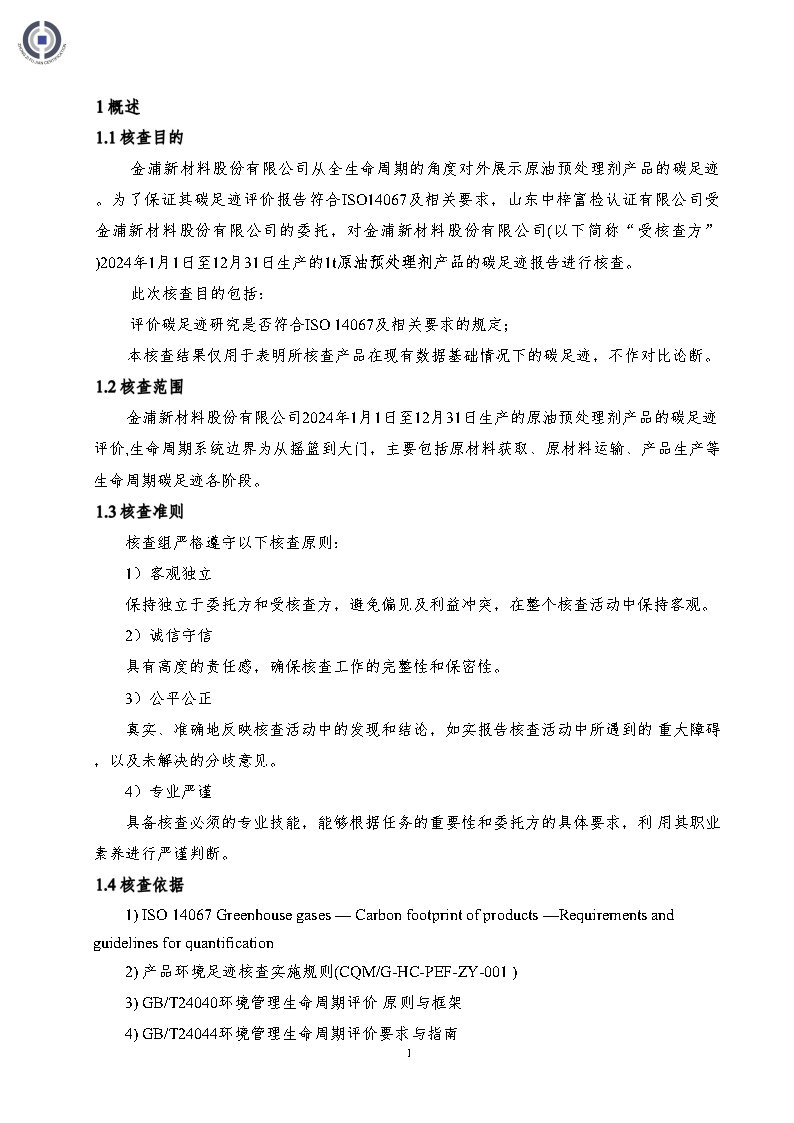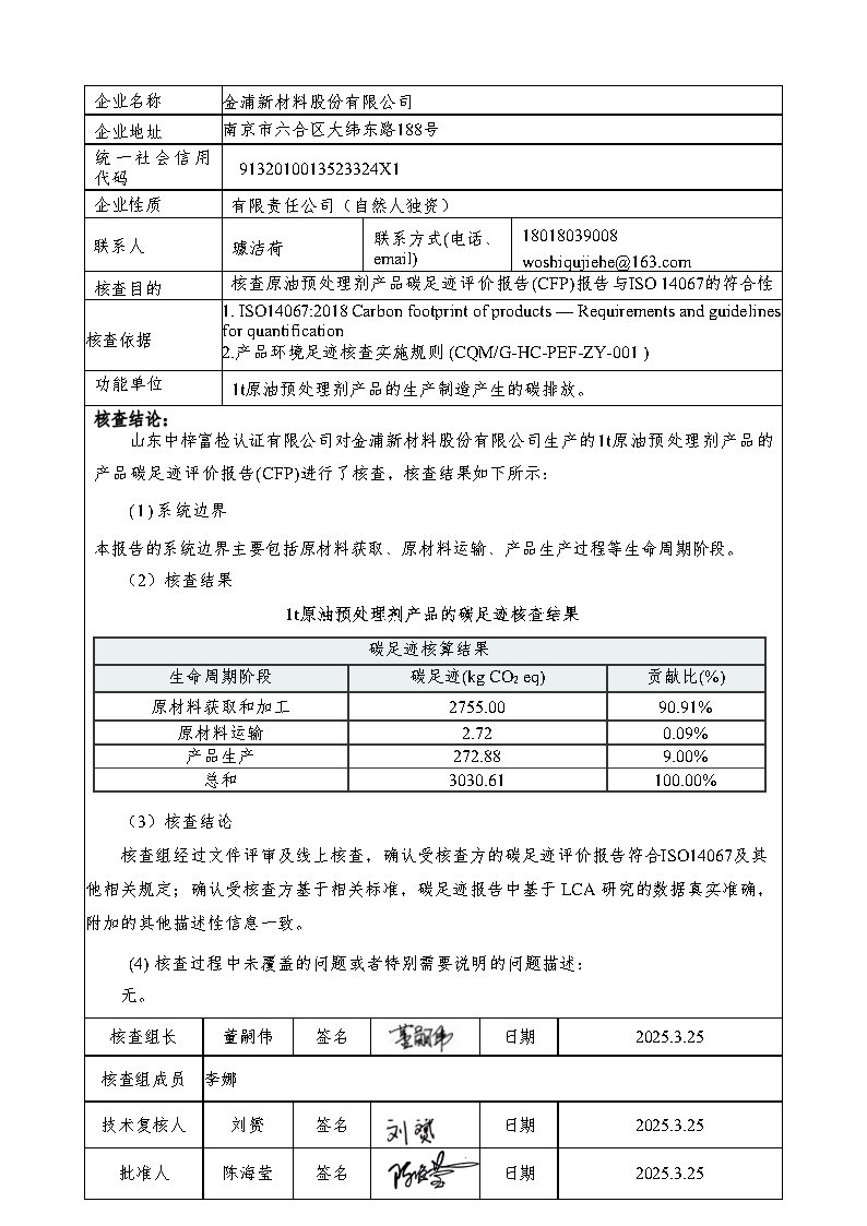 碳足跡第三方核查報告-原油預(yù)處理劑